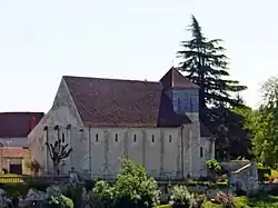 It is possible that only the apse, choir and transept were built during the Romanesque period, later supplemented by the nave, which was undoubtedly offset to adapt to the topography.[3] During the 13th century, the church was enlarged to the north by the addition of a side aisle[1] to adapt to its new function.[4] Its bell tower may have been destroyed in 1566, during the Wars of Religion.[3]