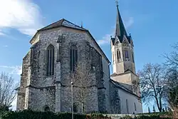 Novo Mesto Cathedral, standing on Kapitelj Hill above the town, is dedicated to Saint Nicholas and is an originally Gothic building that was rebuilt in the Baroque style in the 17th century. The main altar oil painting by Tintoretto, and the side altar paintings by the French 18th century painter Valentin Metzinger, the leading Baroque painter in Slovenia, are on display in the church.[15]