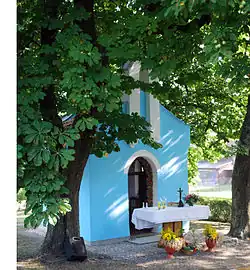 Each Easter the traditional food blessing takes place at the shrine. In May the faithful gather there for May Devotions and on 26 August (the Virgin Mary of Częstochowa Day) a Plenary Indulgence Mass is celebrated. According to a Warmia tradition, once a year a plenary indulgence mass has to be celebrated on the day of a shrine's patron saint.[8] It was this ceremony that drew the attention of the people living in the nearby village of Sątopy, who eventually began to travel to Nowa Wieś Reszelska to attend the plenary indulgence mass. Jadwiga Kuźlik, the village leader, had the shrine renovated and painted blue - the colour of Virgin Mary.[9]