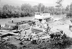 Nowitka loading at Golden, BC for first commercial trip on Columbia River, 1911.