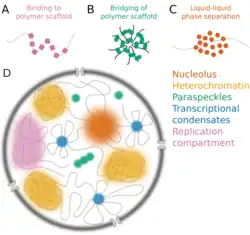 - ^ Weber SC (June 2017). "Sequence-encoded material properties dictate the structure and function of nuclear bodies". Current Opinion in Cell Biology. 46: 62–71. doi:10.1016/j.ceb.2017.03.003. PMID 28343140.