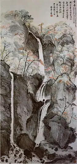 Nukina Kaioku (貫名 海屋; 1778–1863) was a Japanese painter and calligrapher.[1] He had many pseudonyms, but Kaioku (海屋) and Sūō (菘翁) are the most well-known. He was considered a leader in the field of Japanese calligraphy during the Edo period. He was also good at painting in the Nanga style, which is a Japanese artistic style mean to emulate Chinese art and culture.