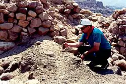 Excavations indicate Numeira was a 0.5-hectare (1.2-acre) walled settlement, though it may have been twice the size we see today.[11] Though only 30% of the site was excavated (c. 1500 m2) between 1979 and 1983.[12] The settlement was located on the southern bank of the Wadi Numeira.[13]