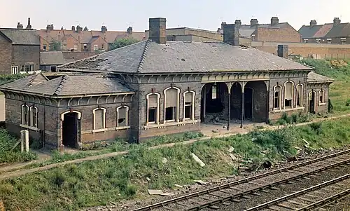 The station was closed on 4 March 1968, and all services were diverted through Trent Valley station. Today, trains still run past the site of the station on the Birmingham-Leicester-Peterborough Line, but little physical trace of the station remains, as the platforms and most of the station buildings have been removed.[2] In 2018 the only remaining remnant of the station was a former waiting room, now within a private garden.[3]