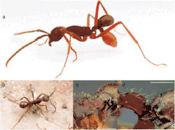 - ^ a b c von Beeren, Christoph; Brückner, Adrian; Hoenle, Philipp O.; Ospina-Jara, Bryan; Kronauer, Daniel J. C.; Blüthgen, Nico (2021-09-19). "Multiple phenotypic traits as triggers of host attacks towards ant symbionts: body size, morphological gestalt, and chemical mimicry accuracy". Frontiers in Zoology. 18 (1): 46. doi:10.1186/s12983-021-00427-8. ISSN 1742-9994. PMC 8451089. PMID 34538256.