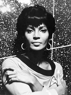 ![]() Nichelle Nichols as Uhura on the set of Star Trek: The Original Series | |