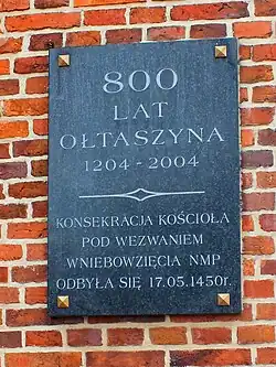 Ołtaszyn was first mentioned in 1204, when Henry the Bearded exempted the entire village from paying a tax according to which the village had to give away a cow, pigs or any other cattle. The first church in Ołtaszyn was built in 1238, which burned down in the first half of the 15th century.[3]
