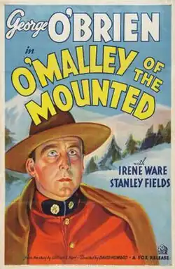 O'Malley of the Mounted is a 1936 American Western film directed by David Howard and written by Frank Howard Clark and Daniel Jarrett. The film stars George O'Brien, Irene Ware, Stanley Fields, James Bush, Victor Potel and Reginald Barlow. The film was released on March 27, 1936, by 20th Century Fox.[1][2][3]