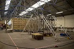 OCP is a 2013 video artwork by Mitch Stratten. The performance taking place inside an elaborate three tonne moving set allowed a puppeteer to synchronise the space with the unpredictable movement of the three characters contained from one button. Engineering, construction and testing took place in a North London warehouse over three months preceding the film shoot completed in two days. The score was composed by Mitch Stratten (also known as Nodern) [1] and mastered by Denis Blackham in the Isle of Skye. The ambitious project had a modest budget of GBP 24,000 based on its IMDb entry.[2]