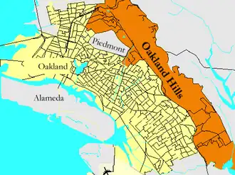 Oakland Hills is an informal term used to indicate the city neighborhoods lying within the eastern portion of Oakland, California.[1] The northernmost neighborhoods were devastated by the Oakland firestorm of 1991.