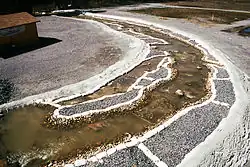 Riverbed before construction, with lines showing proposed new shorelines.