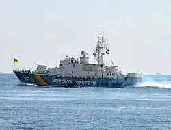 In 2014, following the Russian invasion of Crimea, 12 units of the Sevastopol and Yalta maritime guard detachments were added to the Odesa Sea Guard detachment.[3] On 7 August 2014, a sea guardsman of the detachment (Kolisnychenko Yevhen Anatoliyovych) was killed in combat during the Battle of the border.[4] In 2018, Iryna Herashchenko and Iryna Friz presented the detachment with parliamentary honours.[5] On 12 May 2021, the detachment discovered and thwarted the Russian missile corvette "Pavel Derzhavin" in the Black Sea near the city of Chornomorsk.[6] On 1 June 2021, the detachment's chief of staff, Oleksiy Chertkov, did not arrive at the detachment's location and had gone missing, a search was initiated but failed to bring results,[7][8] he was later revealed to be a Russian agent that had been evacuated by Russian agencies.[9]