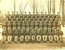 On 27 September 1941, the first Infantry OCS class graduated 171 second lieutenants; 204 men started the 17-week course in July.[14] Testament to the ability of OCS to produce new second lieutenants quickly can be found in War Department decision that ROTC could not fulfill the national demand for officers; so in May 1943, the advanced course in ROTC was suspended and basic course graduates were immediately sent to OCS so they could be commissioned sooner.[15]