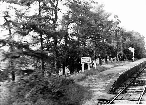As a whole, traffic on the M&SWJR fell steeply after the Second World War and the line closed to passengers in 1961, with goods facilities withdrawn from this section of the line at the same time. The over-bridge formed a dangerous choke point on the road and was removed in 1964. No trace of the station now remains, the Swindon to Marlborough A346 road having been realigned to run on the former railway route in 1969–1970.[2] The road now passes over what was the station forecourt and the small freight yard, which had a loading dock for local cattle that had been herded down the village high street en route to Swindon market.
