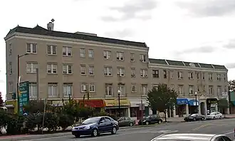 Built in 1929, it consists of six buildings, the primary one being the four-story Ogontz Hall; the others are three stories. The buildings share a commercial front. They have Spanish Colonial Revival architecture with a limestone and buff brick exterior and terra cotta tile roofing.[2]