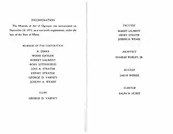Initially founded by Strater as The Museum of Art of Ogunquit, the institution was incorporated on September 18, 1951, with a mission for “the broad educational interests of the public.” Architect Charles Worley of Boston designed the museum to realize the full potential of the site on the coast. Strater commissioned architect Charles S. Worley Jr. to design the building it is housed in.[4] The museum opened its doors to the public on July 25, 1953.