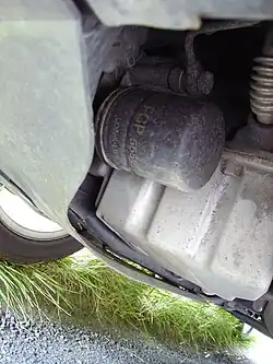 Early engine oil filters were of cartridge (or replaceable element) construction, in which a permanent housing contains a replaceable filter element or cartridge. The housing is mounted either directly on the engine or remotely with supply and return pipes connecting it to the engine. In the mid-1950s, the spin-on oil filter design was introduced: a self-contained housing and element assembly which was to be unscrewed from its mount, discarded, and replaced with a new one. This made filter changes more convenient and potentially less messy, and quickly came to be the dominant type of oil filter installed by the world's automakers. Conversion kits were offered for vehicles originally equipped with cartridge-type filters.[6] In the 1990s, European and Asian automakers in particular began to shift back in favor of replaceable-element filter construction, because it generates less waste with each filter change. American automakers have likewise begun to shift to replaceable-cartridge filters, and retrofit kits to convert from spin-on to cartridge-type filters are offered for popular applications.[7] Commercially available automotive oil filters vary in their design, materials, and construction details. Ones that are made from completely synthetic material excepting the metal drain cylinders contained within are far superior and longer lasting than the traditional cardboard/cellulose/paper type that still predominate. These variables affect the efficacy, durability, and cost of the filter.[8]