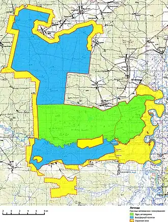Oka Nature Reserve (Russian: Окский заповедник) (also Oksky, or Okskiy) is a Russian 'zapovednik' (strict nature reserve) located in the Meschera lowlands, the floodplain of the Oka River and the Pra River. With extensive lowland rivers and forested peatlands, the reserve is an important area for waterfowl and waders. The reserve hosts breeding centers for bison and for crane. The site is situated in the Spassky District, Ryazan Oblast, about 60 km northeast of the city of Ryazan.[1][2] In 1994, the "Flood plains of Rivers Pra and Oka" was designated a Ramsar wetland of international importance.[3] The site was designated a UNESCO Man and Biosphere (MAB) reserve in 1978.[4] The reserve was formally established in 1935, and covers an area of 55,722 ha (215.14 sq mi).
