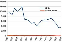 Passenger numbers peaked in 1934, as shown in the graph and table below -