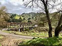 The concrete foundations of the 260 ft (79 m)[15] road-rail bridge over the Ongarue River, on the Stratford line had been laid by 1918, but war-time steel shortages delayed further work.[16] The first piles were sunk in 1916[15] and it had been completed by January 1922.[17]