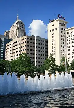 Bricktown is an entertainment district located on the east side of Downtown Oklahoma City.[2] Before a recent renaissance, the area was a warehouse district that had begun to get run down.[3] Today, it is bustling with restaurants, dance clubs, live music venues, upscale retail shops, and offices.[2] Top attractions include the Chickasaw Bricktown Ballpark and a navigable Bricktown Canal, both the result of the city's MAPS projects.[4]