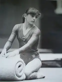 Oksana Omelianchik (Russian: Оксана Александровна Омельянчик; Ukrainian: Окса́на Oлекса́ндрiвна Омелья́нчик, romanized: Oksana Oleksandrivna Omelianchyk; alternative transliterations: Oksana Omel'yantchik, Oksana Omel'yanchik, Oksana Omeliantchik; born 2 January 1970) is a retired Soviet gymnast and the all-around gold medalist of the 1985 World Championships. Omelianchik was most known for her enthusiastic showmanship, difficulty and originality, including pioneering back-to-back tumbling.