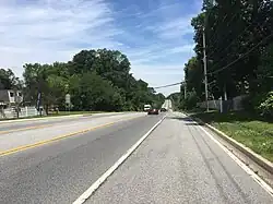 The road, also known as Old Post Road, was incorporated in 1813 as the Elk and Christiana Turnpike in order to get more money for repairs. The turnpike was completed in April 1817. As a turnpike, tolls were collected to pay for the maintenance of the road. The construction of the New Castle and Frenchtown Railroad lowered the revenues of the turnpike and it became a public road again in 1838.[6] The road historically went through agricultural areas; however, the surroundings have become more developed over the years.[5] Much of the Old Baltimore Pike remains two lanes.[6]