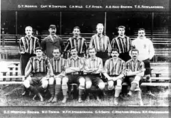 The club was formed from the former pupils of Charterhouse School in Godalming, Surrey,[1] during 1876.[2] Reports in the press of games taking place at the school had appeared since March 1853 and Charterhouse had been one of the founding teams of The Football Association.[3] It was one of several clubs formed from the old boys of public schools in England during the 19th century. Other clubs formed in similar circumstances include Old Etonians and Old Westminsters.[1] Other former members of the school had previously founded Stoke-on-Trent F.C. in 1867, which would go on to be known as Stoke City.[4] Old Carthusians entered the FA Cup for the first time in 1879–80.[2] At the time of the founding of the Football League in 1888, Old Carthusians was the most southern team to be interested in joining the Northern dominated league, but were never added to the league.[5] Old Carthusians became one of only four clubs to win the FA Cup in the first eleven years it was awarded when they won the trophy in 1881,[6] defeating the aforementioned Old Etonians.[7]