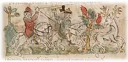 The murder of Lyut Sveneldich, son of the Kiev voivode Sveneld, by Oleg. Miniature from the Radziwiłł Chronicle (15th century)