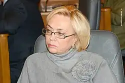Oleksandra Volodymyrivna Kuzhel (Ukrainian: Олекса́ндра Володи́мирівна Ку́жель; born 4 July 1953) is a Ukrainian politician who served in various roles from 1994 to 2019. She was a People's Deputy of Ukraine as part of the Fatherland party from 2012 until 2019. A graduate of the National Metallurgical Academy of Ukraine, she studied at the Zaporizhia State Engineering Academy and received a PhD in Economics in 1983.[2]