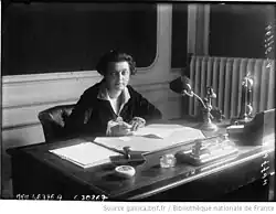 Between 1921 and 1923, Kameneva was a leading member of the Central Commission for Fighting the After-Effects of the Famine[5] and oversaw a propaganda campaign against the American Relief Administration (ARA) under Herbert Hoover in the Soviet press. Between 1923 and 1925, she was the head of the Commission for Foreign Relief (KZP), a Soviet governmental commission that regulated and then liquidated remaining Western charities in the Soviet Union.[6] From 1926 to 1928, Kameneva served as chairman of the USSR Society for Cultural Relations with Foreign Countries ("Voks", Vsesoiuznoe Obshchestvo Kul'turnoi Sviazi s Zagranitsei)[7] In that capacity she greeted many prominent Western visitors to the Soviet Union, e.g. Le Corbusier[8] and Theodore Dreiser,[9] and represented the Soviet Union at the festivities in Vienna commemorating the centennial of Ludwig van Beethoven's death in March–April 1927.[10] Throughout the 1920s, she also ran a leading literary salon in Moscow.[11]