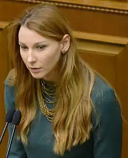 In the 2014 parliamentary elections, Chervakova was elected to the Verkhovna Rada (Ukrainian parliament) representing the Petro Poroshenko Bloc in position 49,[4][6] but remained non-partisan. She was the first deputy chairperson of the Verkhovna Rada Committee on Freedom of Speech and Information Policy.[7]