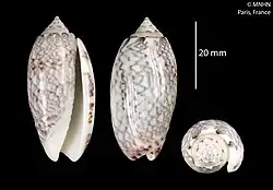 Shell of Oliva tisiphona (specimen at MNHN, Paris) | |
