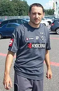 After Klaus Augenthaler's became Leverkusen coach, Neuville's playing time was limited and he was not offered a contract extension. In summer 2004, aged 31, Neuville joined Borussia Mönchengladbach on a free transfer.[6][7] On 17 October 2004 he scored an infamous goal with his hand against 1. FC Kaiserslautern in a 2–0 home win, which was widely reviled and landed him a two-match ban.[8] He netted 22 goals in his first two seasons combined, but appeared scarcely as the Foals dropped down a level in 2007, mainly due to injury.[9][10]