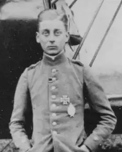 Leutnant Olivier Freiherr von Beaulieu-Marconnay (14 September 1898 – 26 October 1918) was a German World War I ace fighter pilot credited with 25 victories. Having joined the military at age 16, his success in shooting down 13 enemy aircraft led to his being appointed to command a fighter squadron, Jagdstaffel 19, at age 19. He was credited with another dozen victories before being mortally wounded. Because Germany's highest award for valor could not be granted posthumously, it was hurriedly approved just hours before his death. He is notable for being World War I's youngest recipient of the Pour le Merite.[1][2]