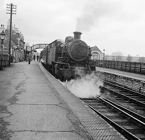 Four daily passenger services were operated between Olney and Towcester from 1 December 1892 to 31 March 1893 calling at Stoke Bruern and Salcey Forest and worked by Midland tank locomotives and rolling stock.[30][33][23] Services ran from a bay platform at Olney and connected with Stratford and Blisworth trains at Towcester.[28] The service was however withdrawn due to low patronage; some trains were running empty and the S&MJR was unable to meet the Midland's charges for working the line.[30][34]