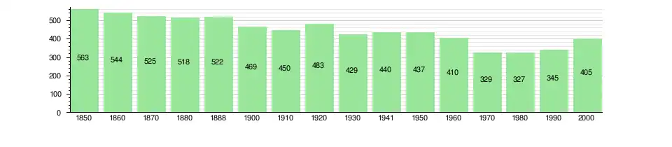 As of 2000, there were 158 private households in the municipality, and an average of 2.6 persons per household.[8] There were 41 households that consist of only one person and 14 households with five or more people. Out of a total of 159 households that answered this question, 25.8% were households made up of just one person and 1 were adults who lived with their parents. Of the rest of the households, there are 45 married couples without children, 64 married couples with children There were 5 single parents with a child or children. There were 2 households that were made up unrelated people and 1 household that was made some sort of institution or another collective housing.[9]