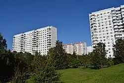 Olympic Village (Russian: Олимпийская деревня) is a residential microdistrict in the west of Moscow in the Troparevo-Nikulino area, built in 1977–1980 as part of a program to prepare for the 1980 Summer Olympics for the accommodation of their participants. When designing it, a standard series of residential panel houses was used, and the construction of household buildings envisaged by the project made it possible to transfer the microdistrict to the city after the end of the Olympics. In addition, some of the buildings house cultural institutions.