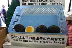 Water at some onsen facilities is drinkable.[39][40][41] Onsen water should only be consumed if it is confirmed to be safe to drink by the prefecture.[40] The water should be obtained from a designated drinking source that is separate from the water which is bathed in.[40] The often mineral-rich onsen water is believed to have benefits such as treating iron-deficiency anemia or constipation.[39][41]