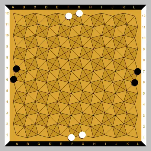 - ^ "A larger board results in more strategic depth but also a longer game. It seems a board [...] with twelve points along each side is ideal for this game." (Back 2000:11). Some puzzles have been composed for Mini-Onyx boards having six points per side (Back 2000:12).