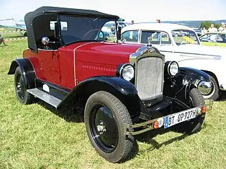 At the end of 1928 the claimed maximum power from the engine increased to 20 PS (14.7 kW) at 3,500 rpm which pushed the listed top speed up to 77 km/h (48 mph). This was accompanied by a further change in the carburetor specification. Three-seater bodies had by now disappeared from the list, but a new 2+2 cabriolet was introduced in 1930.[13]