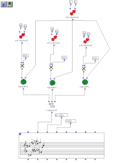 Programs in OpenMusic are created by connecting together (a process known as 'patching') either pre-defined or user-defined modules, in a similar manner to graphical signal-processing environments such as Max/MSP or Pd. Unlike such environments, however, the result of an OpenMusic computation will typically be displayed in conventional music notation, which can then be directly manipulated, if so required, via an editor. A substantial body of specialized libraries has been contributed by users, which extends OpenMusic's functionality into such areas as constraint programming, aleatoric composition, spectral music, minimalist music, music theory, fractals, music information retrieval, sound synthesis etc.