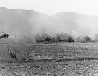 On the morning of 6 November 2/5 Marines was landed by helicopter in Antenna Valley. Company H was proceeding towards its objective, the village of Ap Bon 2 in the northeast of the valley when it was ambushed by an entrenched PAVN unit. The Company commander ordered his 2nd platoon to outflank the PAVN ambush but they were also ambushed west of the village losing 2 Marines killed and withdrew back to the Company position. Air and artillery strikes were called in and then the 1st and 3rd platoons assaulted the village however they made little progress against the well-entrenched PAVN. At 16:00 Company F arrived to reinforce Company H and launched a fresh attack on Ap Bon (2) but was also repulsed. At dusk both Marine companies withdrew and established a night defensive position which the PAVN hit with mortar and machine gun fire until 04:30 on 7 November when they withdrew. At dawn the Marines attacked Ap Bon (2), but found it deserted with most of the bunkers and fighting positions destroyed by airstrikes and artillery fire. The Marines had lost 16 killed in the fighting.[1]: 120–2