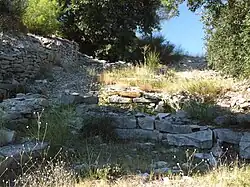 The Oppidum de Roque de Viou is on a hilltop overlooking the valley called the Vaunage, above the village of Nages-et-Solorgues, in Gard, between Nîmes et Sommières, in Occitanie, France. It is in the commune of Saint-Dionizy and is one of six Iron Age oppida in the Vaunage; about 200m from the Oppidum de Nages or Oppidum des Castels. It was occupied in three periods between 700 BCE and 600 BCE and between 350 BCE and 300 BCE and around 50 BCE. It has been listed since 1980 as a monument historique by the French Ministry of Culture.[1]