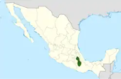 Opuntia huajuapensis is native to parts of Oaxaca, Puebla, and Tlaxcala in Mexico, where the species grows at elevations of 2,000–2,700 m (7,000–9,000 ft). It primarily grows in Pre-cordilleran steppes and Oak-savannah.[1]
