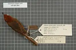 First collected in the Arfak Mountains, the orange-crowned fairywren was described by Richard Bowdler Sharpe in 1879.[3] Molecular study indicates that it forms a clade with the fairywrens of the genus Malurus.[4][5] Alternative names for the orange-crowned fairywren include orange-crowned wren, rufous fairywren, and rufous wren-warbler.
