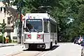 Orange Street/Media station is a light rail station in Media, Pennsylvania. It is a street running stop located at Orange and State Streets in Downtown Media. There are no physical platforms; passengers board and exit trolleys directly from street level. Trolley service is provided by the D and runs east to 69th Street Transit Center in Upper Darby. Orange Street is the westernmost station on the line, and is unusual in that the tracks simply and abruptly dead-end in the middle of the street; there is no bumper block, balloon loop, or train yard at this location although an overhead wire device will knock down the trolleys' overhead pantograph so that they cannot continue past the end of track (although some cars have slightly derailed there and gouge marks are evident in the asphalt).