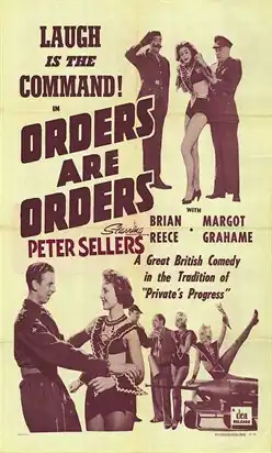 Orders Are Orders is a 1955 British comedy film directed by David Paltenghi, and featuring Brian Reece, Peter Sellers, Sid James, Tony Hancock, Raymond Huntley, and Bill Fraser. It was written by Geoffrey Orme and Donald Taylor. Eric Sykes contributed to the script and appears in a minor role.[2] It was a remake of the film Orders Is Orders (1933), itself based on the 1932 play Orders Are Orders by Ian Hay and Anthony Armstrong.