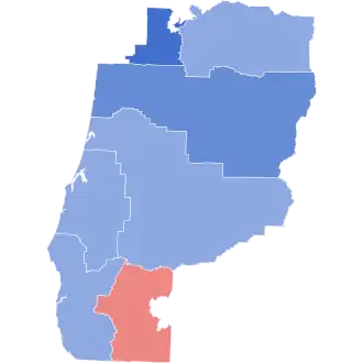 County results DeFazio: 50–60% 60–70% 70–80% Feldkamp: 50–60% |