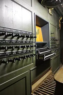- Windchests: Rugpositief (1730), Hoofdwerk (1984), Bovenwerk (1976) and Pedaal (1692, 1730, 1854)